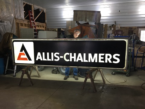 Great find for sure! That sign is in Mint condition, would love to find a sign like that for sure. Nice looking 440 as well. From the decals on that AC 440, was in originally a White/ Cream cab and later painted orange?