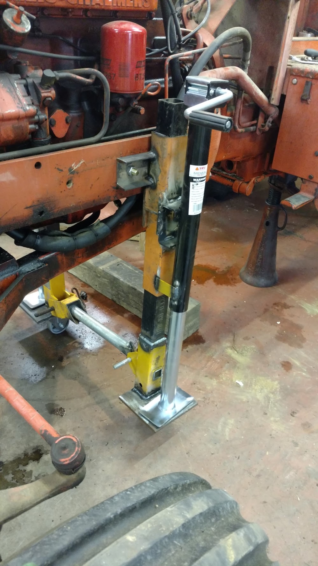 have one in the shop now (6060), just made two legs out of 1.5"x 1.5" angle and mounted to the platform bolt holes, made legs before spiting tractor (no jacking or leveling needed for reassembly). This ones getting the engine rebuilt. 9300 hours on original engine. Dan ![]() ![]() Edited by Acdiesel - 02 Jan 2019 at 11:07am |