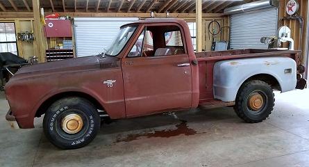 found a new home yesterday. It had been sitting for over 20 years, probably had not been started on over 15. Neighbor a few miles from the farm had asked me about it several years back but I didn't hear anything else from him until a couple of weeks ago. It was a '67 Chevy, 6 cyl, 3 on the tree, swb stepside, body rough. He traded me a Woods mower with mounting brackets for a B and a B drawbar with little wear for it. He has already started to work on restoring it.