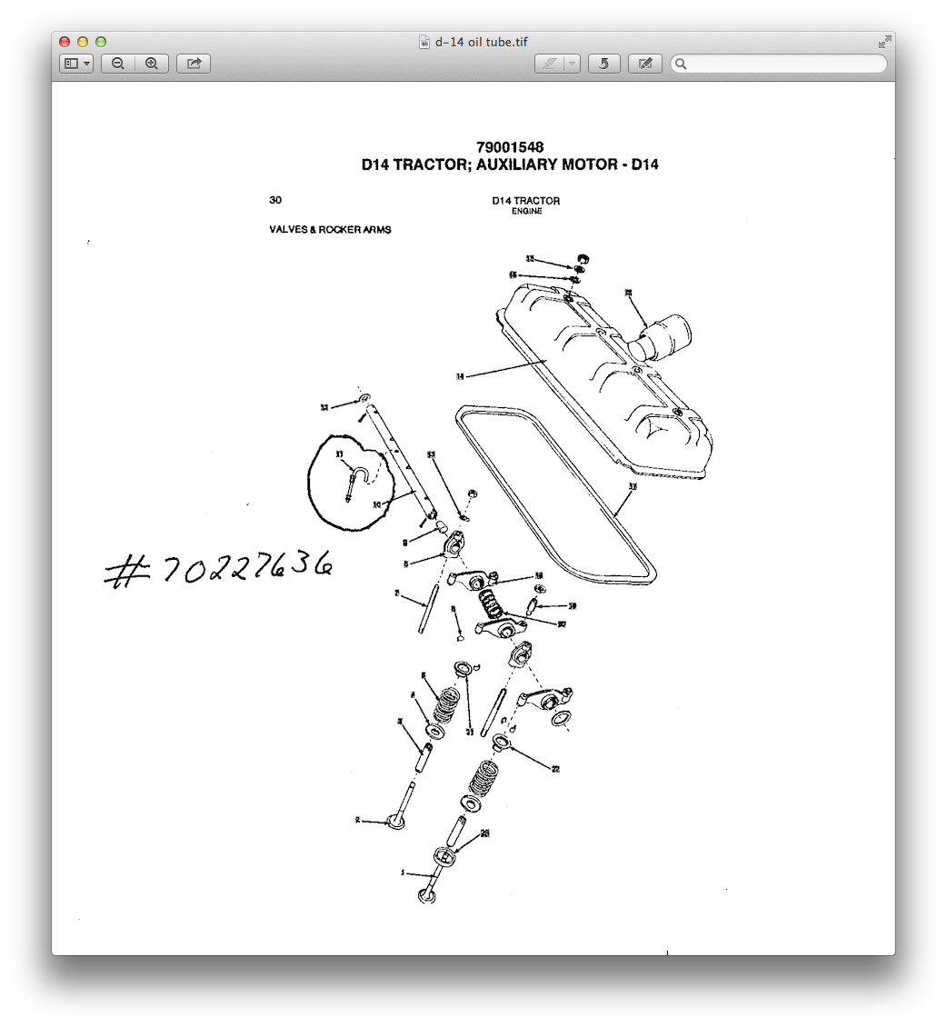 I am in need of this oil tube for my D-14. Part number 70227636. I may call Sandy Lake, but I thought I would check here first. Thanks. rrhead(SD)