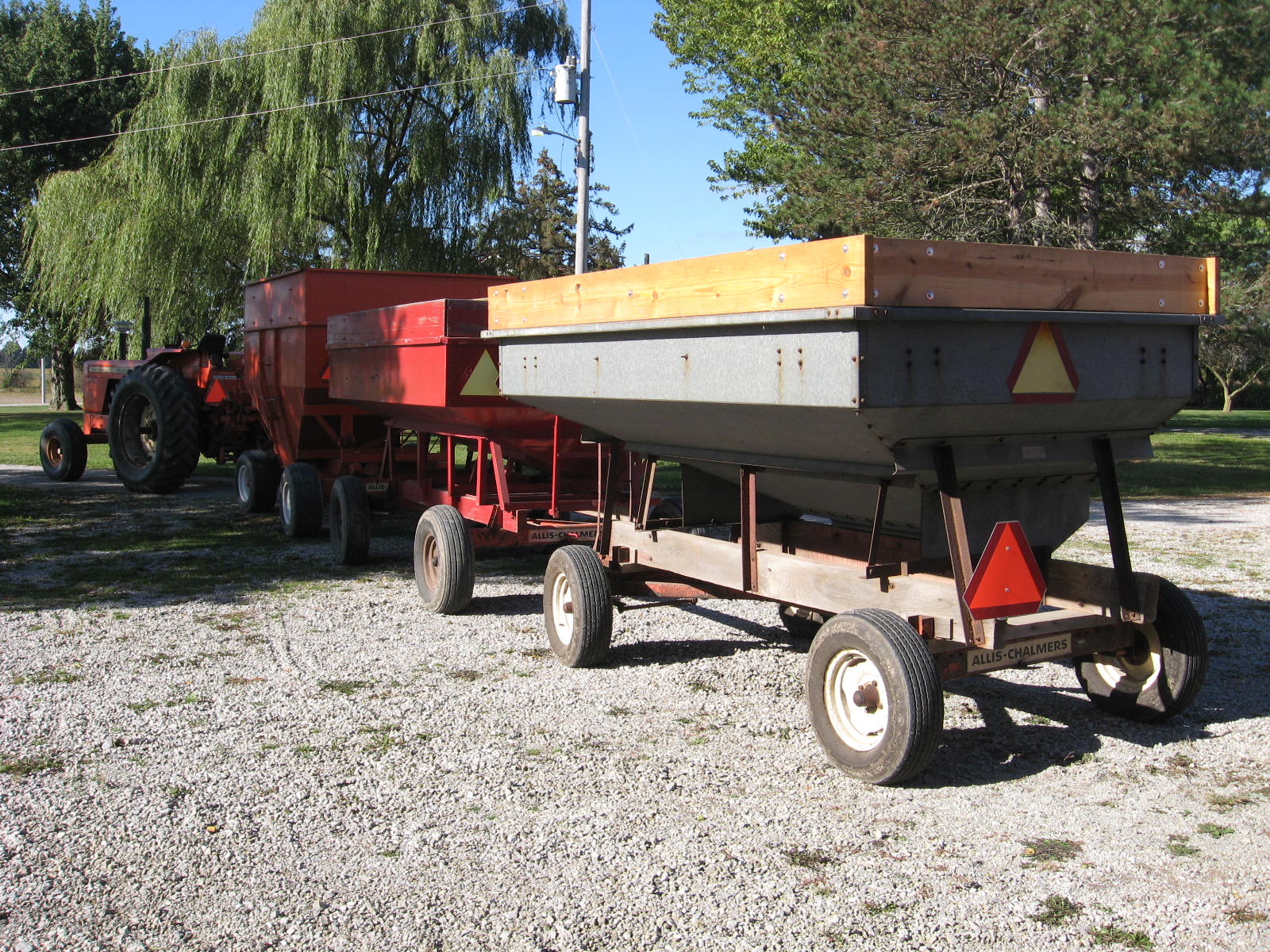 Yes, that silver gravity wagon looks like one of a pair of AC model 405 running gears I saw for sale in NW Indiana serveral weeks ago. Is your first wagon a Killbros 350 box on an AC 800 or AC 701 running gear? You have a great set of AC wagons. thanks for sharing.