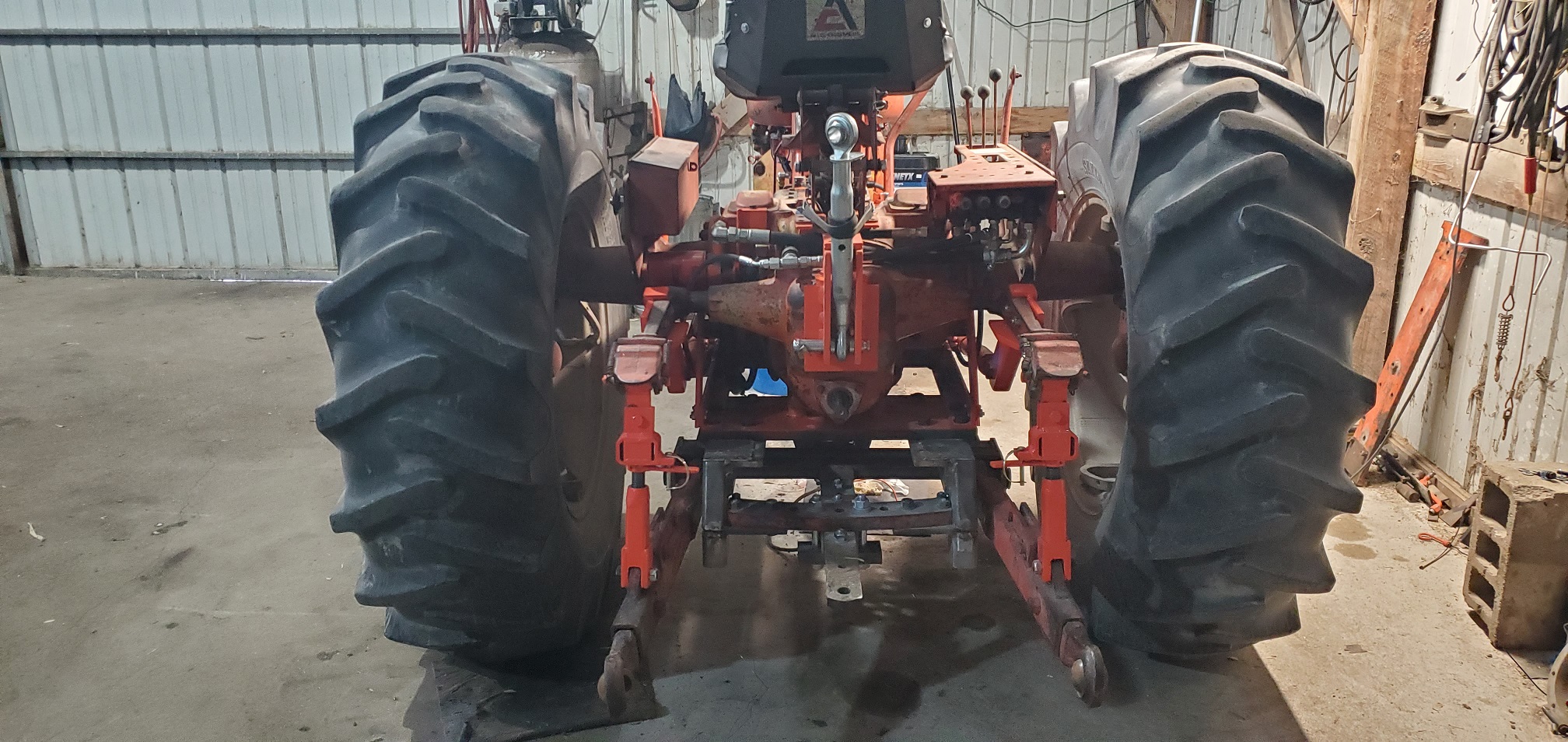 Plow day ?? My brother has 3 acres of sod to do maybe this Summer. The design of the 3-point hitch is such that, after dropping the draft arms/lift links (a 2 minute job), I can unbolt each side frame, the drawbar bail and then pull the drawbar out of the snap-coupler bell and this tractor still works with snap-coupler equipment. The heavy base plate and braces and auxiliary lift cylinders stay on the tractor.