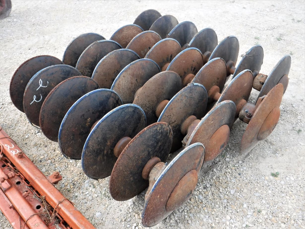 Bought new new unassembled AC disc today. Listed as 14 foot. believe its a 10 footer. Tags on it have numbers 382180 on the frame, 32055 on a pan. looks like cement blocks would fit, and 82056, wood bearing 300627. 7 discs on each axle. 4 axles. about 4 ft wide.uploads/22596/disk22-1.jpguploads/22596/disk22-2.jpg new to this forum need to figure out how to post pics.