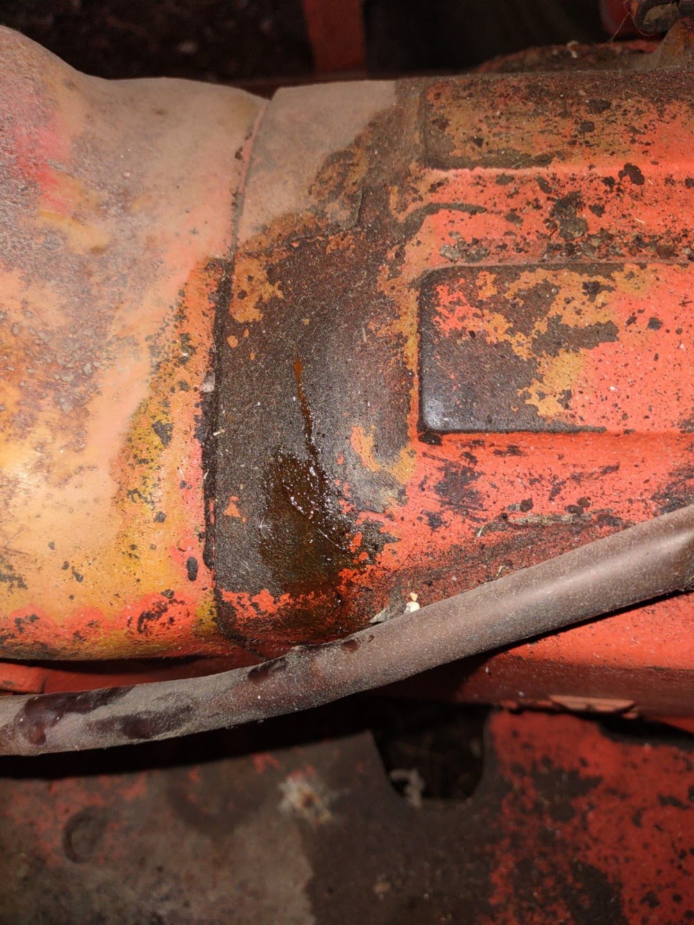 D12 series 3, 1964 or 65. I've noticed a tiny bit of fluid on the transmission/differential housing in the past, right under the front edge of seat. Could never see where it was coming from. After loading the lift yesterday with some wood, it became quite clear that the housing is cracked. Trying to upload pictures. The tractor guy I talked to said it's bad, tractor is basically breaking in half. He won't have time to look at it soon so I came here to see if anyone else has had this happen. I read somewhere that it might be fixed by welding a plate that bridges the crack. Comments? Advice?