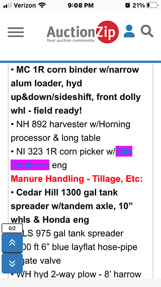One row, New Idea 323 corn picker, powered with an Allis Chalmers engine. Located in Strasburg, PA. https://www.auctionzip.com/Listings/3756563.html?kwd=allis%20chalmers |