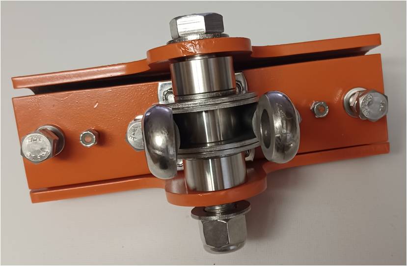 Here is the adaptor modification for attaching the top link horizontally instead of vertically (which aligns with the natural orientation and range of motion of the top link itself).  Basically it's a D shackle with spacers to adjust its position and range of motion.  We'll see how it works :).  I really dislike machining stainless steel, but mods were necessary to the D shackle :(