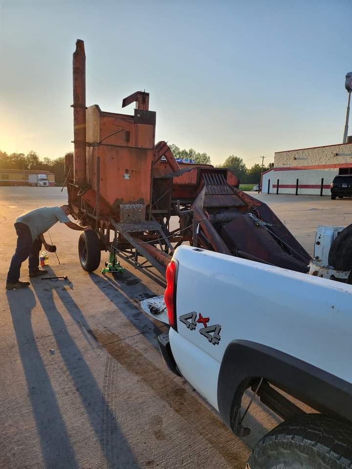 Bought a 66 with a corn head at Farmerzzz's auction a week ago. Decided I would pull it home like I have done every other one of these I acquired over the years. The hubs were absolutely shot on this one and just would not keep grease in them. Luckily I had just by chance thrown an extra hub in the back of truck before I left as about 45 min from home the grain tank side started smoking. Changed it on side of road and made it the rest of the way home. The box on this one is absolutely junk, but the corn head is rebuildable so I'll save all the associated parts for it and junk the rest. Now just need to find a good 66 to put this on I suppose. Or a 72 if it would fit one of them.