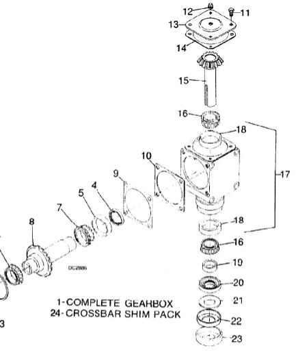 Blade / hub unit came off easy.. Nice design. Got the box out no problem ( this is the one that has the square drive shaft thru the center of the box).. Took side plate off and pulled the bevel gear and shaft. The PINION is looks and wiggles up and down 1/8 inch. Pulled the seal off the end and i can see the sleeve that sets up against the bearing. I was ASSUMING i would find an adjustment nut to set the bearing preload ??? Nothing there... Pounded on shaft and it does not want to move ? What holds the lower bearing #16 UP into the hosing ? How do i get the shaft #15 OUT ?? It appears you just POUND HARDER... but how do you adjust the bearings ? #20 is the seal, #21 is a washer and #22 is a sheet metal dust cover.. Edited by steve(ill) - 09 Nov 2023 at 4:13pm |