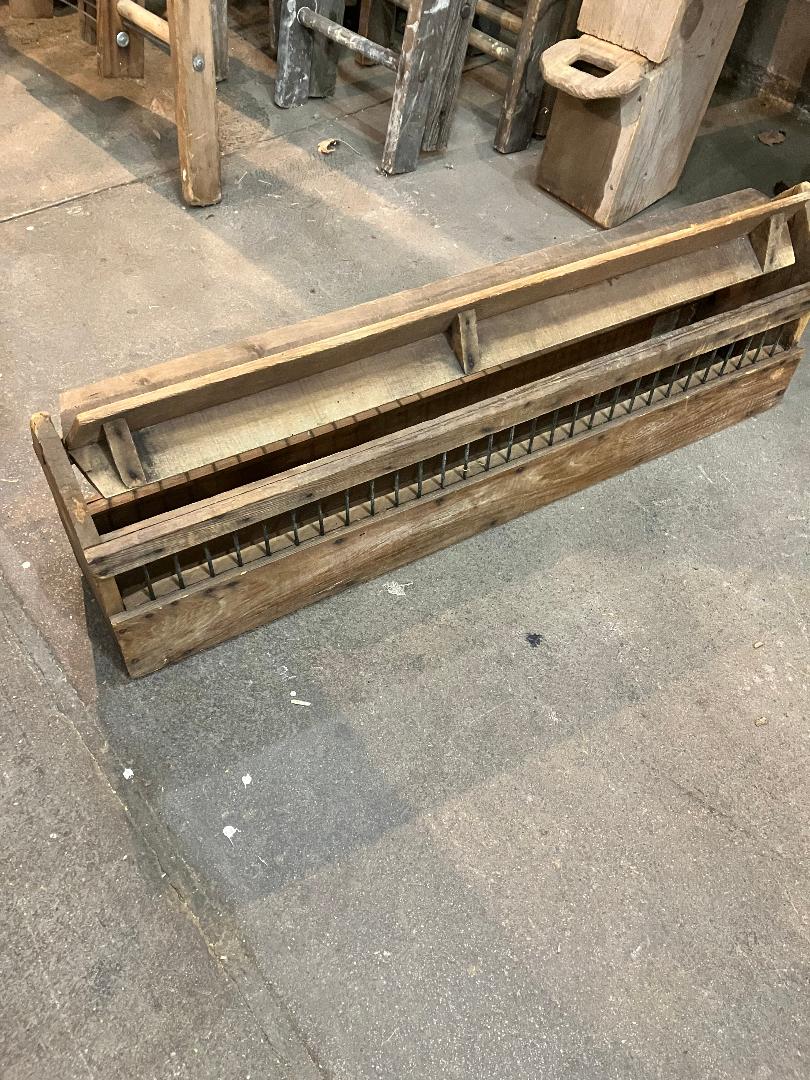When I started working for the Auctioneer about 12 yrs ago you couldn't get a bid on metal chicken feeders & nests unless it was a big pile for the scrap guys and the wood feeders we threw in the dumpster or burned. That feeder would bring $100. or more now! There was a nice metal 3 over 3 nest at Auction last summer I thought I'd buy to give the hens more room. It sold for $250.oo The hens are still sharing nests...Harvey