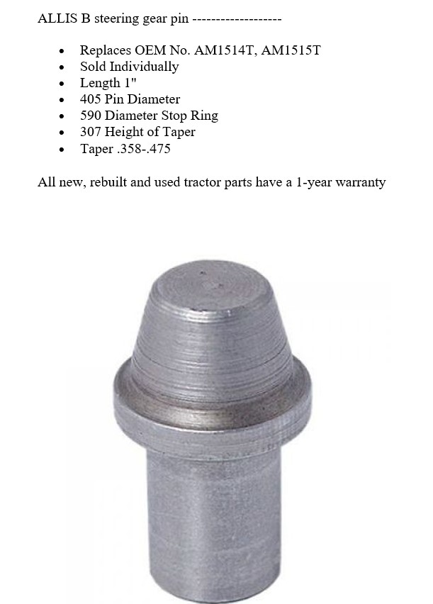 Mike, I don’t think Allis ever sold just the pin, parts book only shows the lever the pin is in, Deere did sell the pin alone, Allis chose not to.