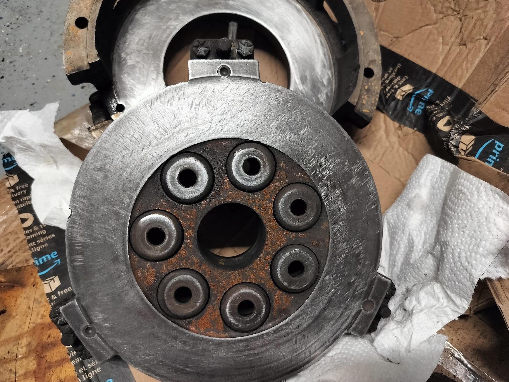 Behind the flywheel is dry, transmission side has seen some oil. Gonna work on cleaning it up tonight. Got some products to degrease. I knew going into this it needed a clutch. I was expecting worse actually. The flywheel is not bad, neither is the pressure plate. Nothing to catch a finger nail on. no ridge on the edges. I am on the fence about spending the money or just throwing a PTO and Trans clutch at it. The PTO clutch is actually in really good shape. The tractor is very easy to split. not saying I want to do this again in a year.