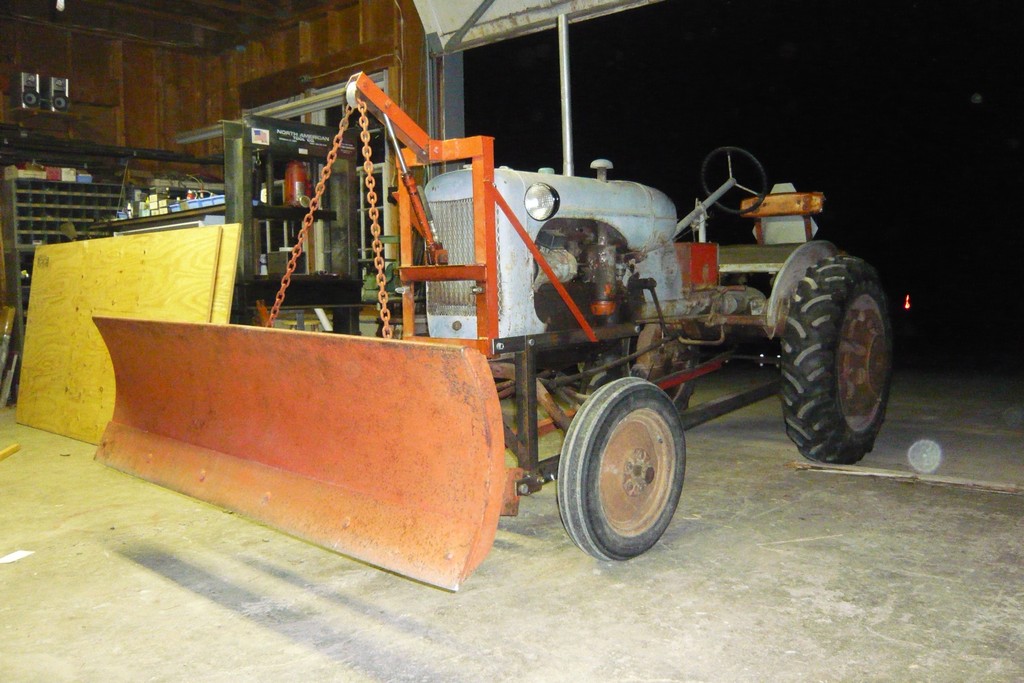Never mind the gray, it looks like it is gray PRIMER. Someone was gonna paint it Persian #1 and didn't get around to it. I agree with JohnThomas on the supports that are needed, the safety trip and chains on the outboard of the plow to keep it level. As CTucker said the lift on the blade would be more if you moved the bar up for the bottom of the piston. That would shorten up the distance between the upper and lower and that in turn would lengthen the throw of the piston. That would enable the plow to lift higher. Looks great though and I expect you will have a ball using it in the near future. Great job!! I sure could use something like this in WI right now. Tooooo much show already and it isn't even winter yet! Merry Christmas, Ted |