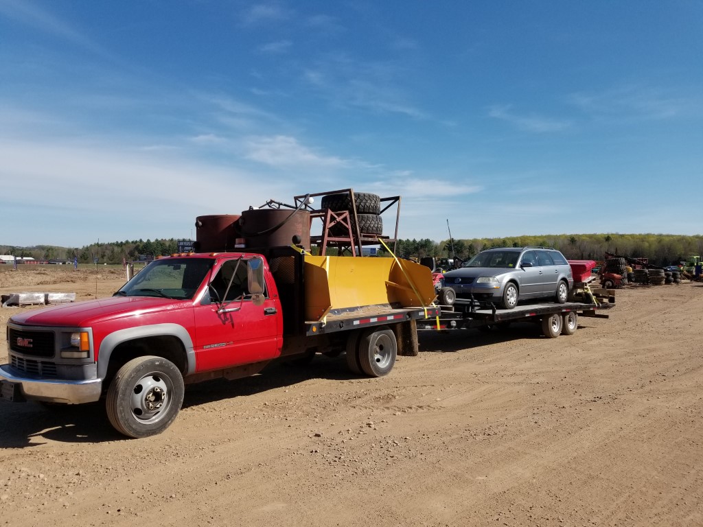 Second auction trip a success. 22,380 pounds across the scales in Minnesota, and average 9.86 miles per gallon.  10.22 just pulling the empty equipment trailer, and 8.72 with truck and tractor on the trailer.