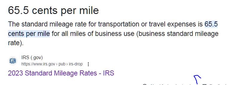 tidbit crazy.... few years back, up here ,,north of the 49th, The guv said I could charge 37 cents per kilometer. I then asked what the tax gal could charge....... 45 cents !!! I didn't bother asking why.... sigh.....