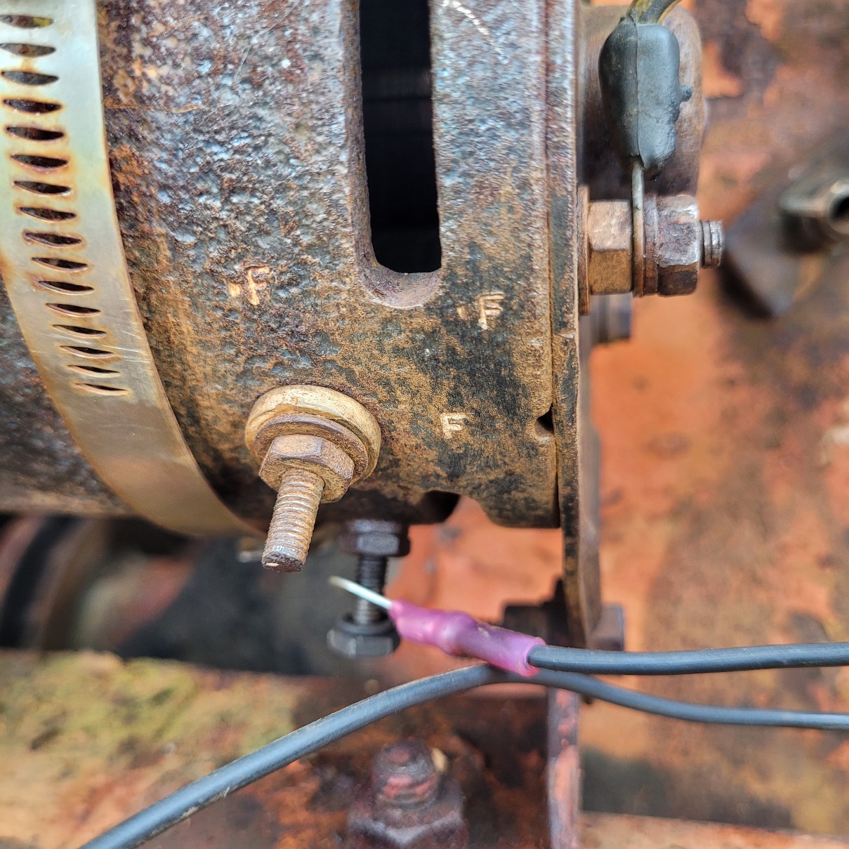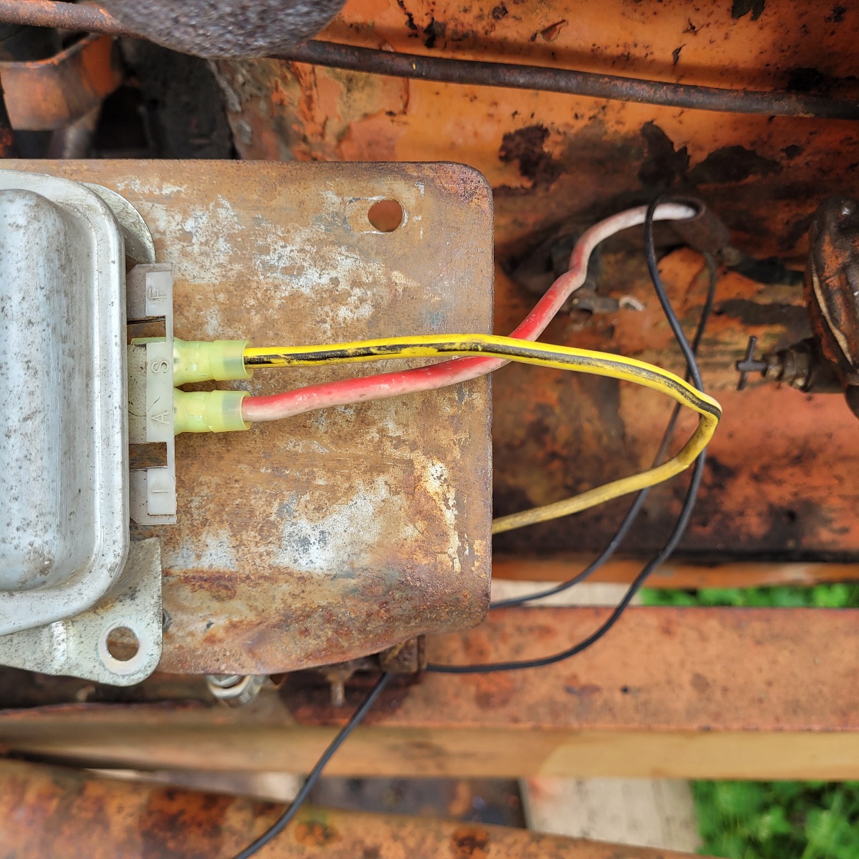 Please, please, do NOT attempt to take any more readings with the tractor running, we need to figure out how your generator is configured internally. Someone has scabbed a completely different generator and regulator on your tractor, and we need to find out if there is any possibility of it being usable.