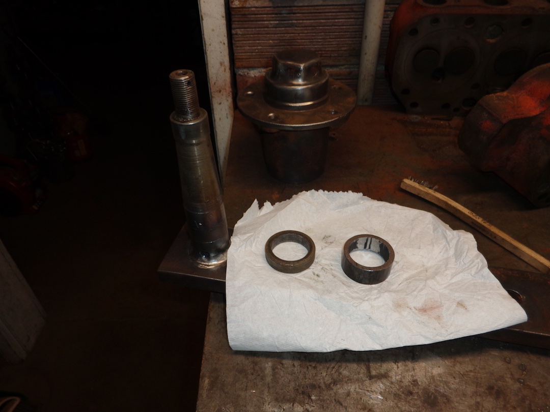 Here is a picture of the spindle, (welded in a piece of plow frame) the original spacer in question, and the additional one I needed for the gauge wheel. ![]() |
