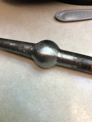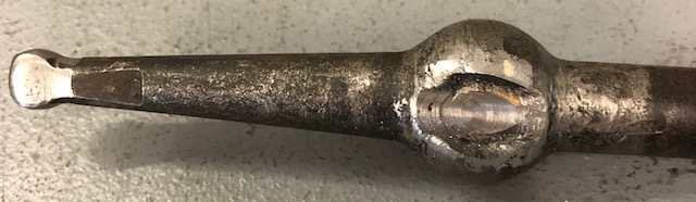 The pin hole drilled all the way through served a few purposes, it supports the pin a little better with more meat along the shank, and it allowed me to back drill the hole on the right through the top of the tower to keep it in line. Unfortunately the rh hole is a little too low to allow for a nut on the pin due to the shape of the casting, although with a new pin in a fresh hole it will be quite some time before it becomes a problem.  A couple of other things I want to address is the socket in the tower is pretty worn so the shifter sits a little too low, the proper way to address it would probably be to weld and machine the socket to correct size, but I'm debating using epoxy like JB Weld or A4 Metalset. I tried forming a washer to fit under the ball but it actually slipped down into the transmission after actuating the shifter a few times so I gave that up. I'd also like to try adding a bit of shim under the heads of the pins to keep them snug into the groove on the ball.