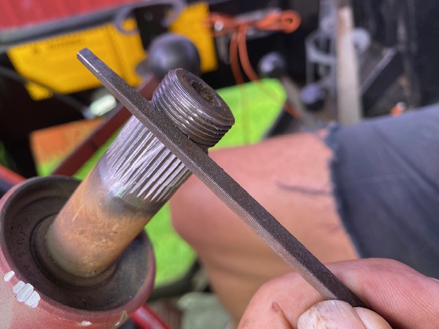 ![]() ![]() ![]() Hot this morn, box fan in rear window blowing outward. Installed new smaller wheel in 7000. Tried heating nut with torch…don’t even think about that. The plastic burns and fills cab instantly with TOXIC fumes. Just 4” grind both sides. Other than that mistake all went ok, and love the difference ! |