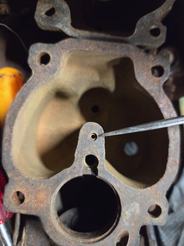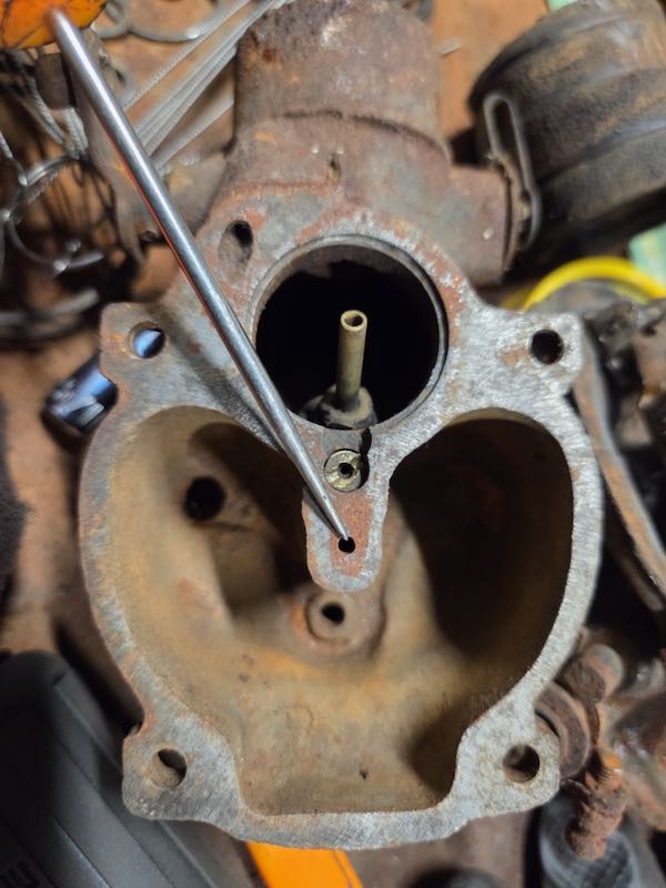 Then I noticed that the idle fuel pickup passages drilled into the bowls are different sizes, and the CA/11141 has a brass orifice installed. The C/9705 has no orifice. Since the drilled holes are different sizes the brass orifice from the CA would not fit into the C bowl. How important is this orifice? I would've thought this was mostly irrelevant as the idle jet sizing controls flow into the throttle body. However... I also doubt Zenith put that orifice in there just for fun and extra cost. ![]() CA/11141 carb: ![]() C/9705 carb: ![]() |