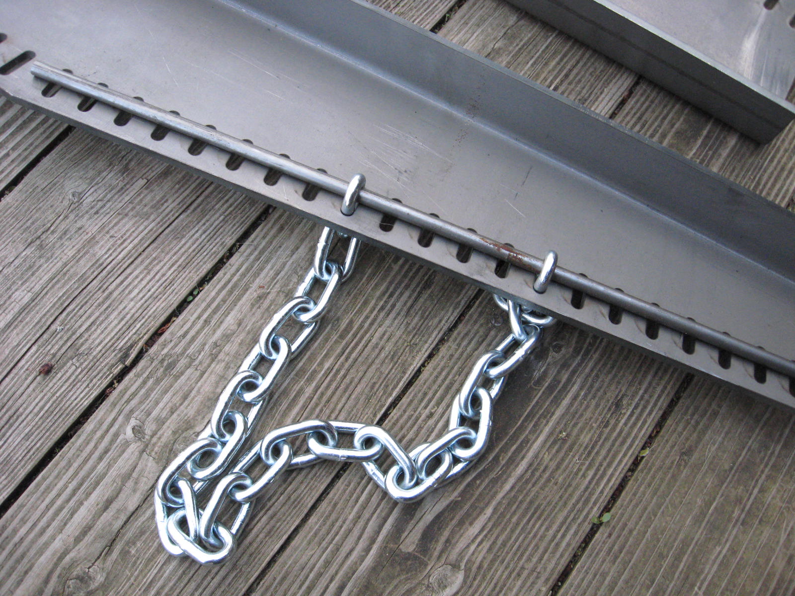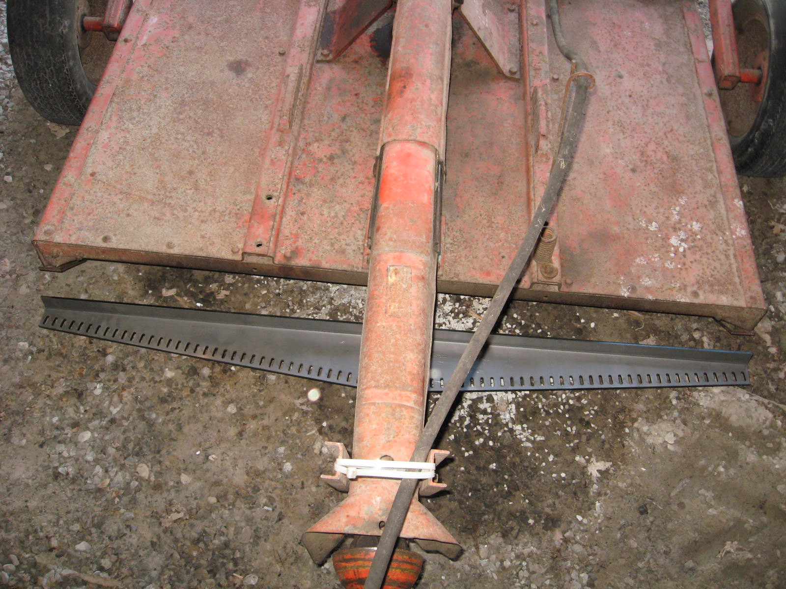 From the Parts book, both the 5' and 6' mower use the same rear shield, front shields are different though. I stopped by the metal fab shop today to see if they could make the support only with holes for the chains. They can make them no problem. Gave me a rough estimate of $350 for a pair. If I buy more than one price would drop around $75 per pair since set-up fee is covered in the first unit. I want these to be as near identical to the original as possible, so I really need the information requested in my first post in order to proceed. Don't need any photos, but thanks for the offer. I'm going to have a set made for my mower. If anyone else wants a set or just one please let me know. I'm not looking to make a profit from these, so depending on final tally, price would be adjusted. You would have shipping and cost of support from me. Once you get it you would drill mounting holes, buy your chain, rod, mounting bolts and pins local.