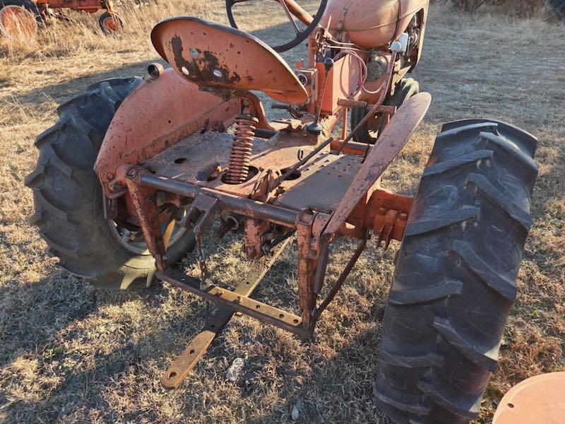 I started working on a CA I dragged home last summer - engine was loose, but missing distributor, nasty carb and gas tank, all tires shot, etc. Definitely a project with a lot of unknowns. This '52 that ran and had great rear tires came up at a local auction. I test drove it and figured if I could buy it for the price of new tires it was a no-brainer and here I am. The hand clutch seems to work and I didn't have any rear weights yet. The float stuck so badly when I tried to start it to load it on my trailer that it wouldn't start. It dumped gas everywhere. Winched it on and did get it started again at home. It'll need at least a carb rebuild, fluids, and some other TLC. The starter makes an awful clashing noise sometimes... maybe the pinion doesn't always fully engage so that needs looked into as well. I'm looking forward to setting up a cultivator and building a mounted planter to do 15" rows. I might have to put a WFE on it for that. One thing I was not sure about: when I let the clutch pedal out in neutral, the engine lugs down a little and the tractor drives forward an inch or two, then acts like it should in neutral. Do I have a bearing going out somewhere in the trans, or something else? My other tractors don't do this even with cold oil, but I haven't driven a CA before. ![]() ![]() ![]() |