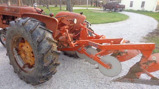 Well here is what yours might look like. ![]() I know its supposed to be PO#1 ![]() ![]() ![]() Had a small coolant leak from head gasket. Comes and goes. ![]() OK time for a little play time in the dirt and to see what this D17 will do. Lets get some mud on the tires! ![]() Out come the restored AC three bottoms. Sure was nice that all the adjustments worked. ![]() Setting it up. That's silver paint on the moldboards. Going to try to scour them on some clay behind the house. ![]() Set up the left rear on about 7 inches of plank. ![]() That right rear tire looks about right for being in the furrow. ![]() ![]() ![]() This is looking back along the inside of the right tire for alignment with first plow shear. Looks pretty good. Proceeded to level the plow to the ground. ![]() Second gear low range to get the feel of things. And learning how the traction booster control functions. Looks good so far. ![]() Striking out down the center of this 5 acre plot. Was beans last year. ![]() North side of the field first pass, headed into the sun. ![]() ![]() ![]() Made a couple rounds and then it was time to shut down for the evening. If the weather is good I may work on this tomorrow. ![]() Never plowed with a narrow front end tractor before. Love the power steering. She sounds pretty darn good pulling in the hard clay ground. Going slow till the plows are shined up. ![]() Well this combo plowed better than most I have used. 45's were a little under powered. Our Ford 5000 was light in the front for the 4 bottom mounted plows. This D17 just seemed to be having a good time. I know these could pull 4 bottoms in the right ground. But this set of three bottoms seemed about right for ground conditions. Moldboards cleaned up pretty good too. ![]() ![]() ![]() Hope things are good out there in Orange land! Regards, Chris |