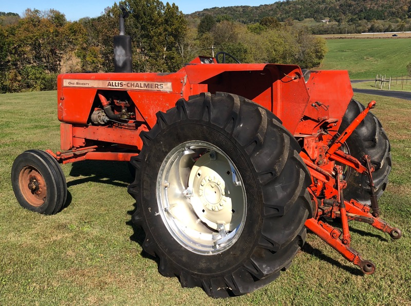Allis Chalmers 170 gas, 3 point hitch with original top link, power steering, straight sheet metal, runs strong, doesn’t jump out of gear. Rear rims sandblasted, primered, painted inside and out, new tubes, rear tires like new, many parts come with it: new steering wheel, tie rods, electronic ignition, fuel gauge. Auburntown TN