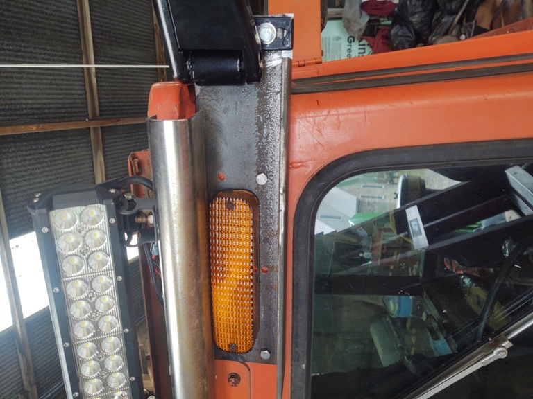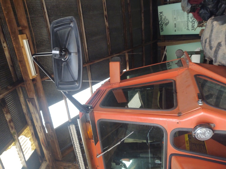 Thanks. Coming up with the idea of putting the light on top of the bracket was necessary and made it fall into place. After having done this though, I think I could have put two screw holes just to the left of primary post, snugged the bracket right up to the edge of the light and still had a strong 6 inch bracket. I was worried that it would be too flimsy. There is a tightening knob that will let the mirror retract to the point of being less than the tire width. Of course, remembering to collapse it is another thing before hitting tree limbs. The always sneak up on you. There are breakaway mirror kits for sale at about twice the money that I spent on this kit, so I will probably go in that direction if I break it off. I hope it doesn't screw up my cab metal though if it does happen. I wasn't sure how I was going to mount the mirrors so I didn't splurge on the better mirror kit. I believe my bracket is flexible and can handle other mirror kits. We don't spend much time near trees on the haymaking so it should be a fluke situation. Of course, if it can happen, it will happen.