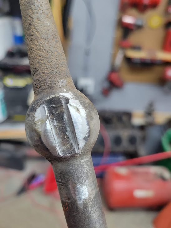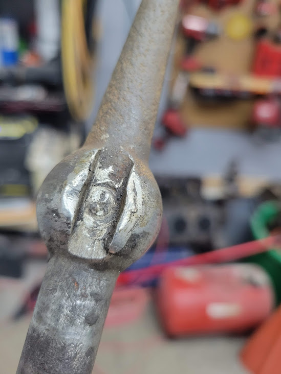 before: ![]() After: ![]() Shifter ball also was helped a bit. Cleaned up the worn areas and made sure things slide nice. I still need to fill the shifter tower and re drill the hole for the square pin. before: ![]() After: ![]() I also made up my hand clutch linkage. I got the clevis' from my local freightliner dealership as well as a 1/2-20 x6" bolt. cut the head off and welded it to one clevis. kept the other one free for adjustments. Just need to clean up the welds and install a jam nut into place and we are ready for primer! ![]() |