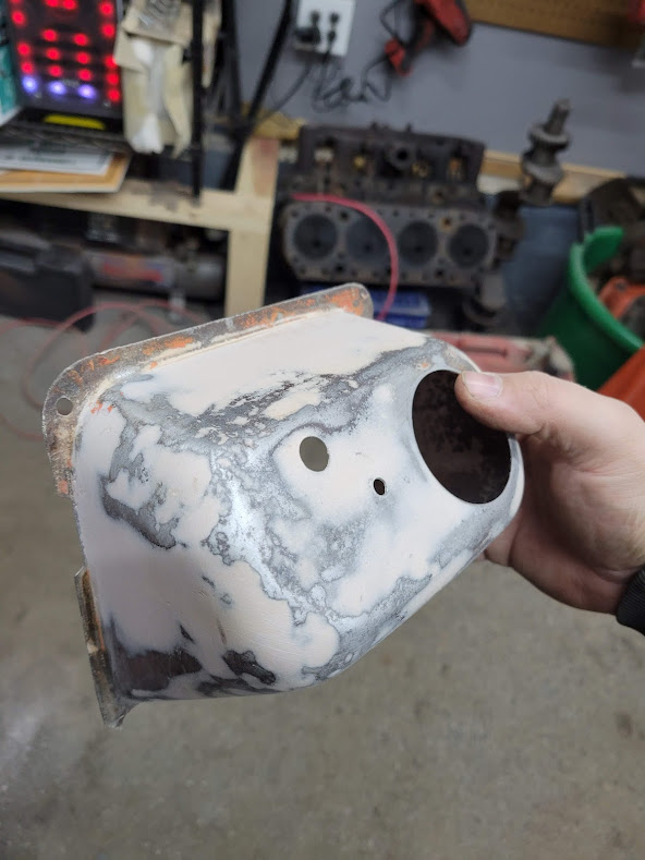 before: ![]() After punching out the dents with a body hammer. ![]() After body filler for the low spots: ![]() After 2 coats of primer. ![]() I also got the word back from the machine shop for the engine. Block is .002"-.003" low between cylinder 3 and 4. rest of the block is in good shape. he will deck it flat again then shave the liners to make it the correct protrusion. should be aiming for .003" or .004". I will then send him over the crankshaft for measuring and cylinder head for a valve job and flatness check.