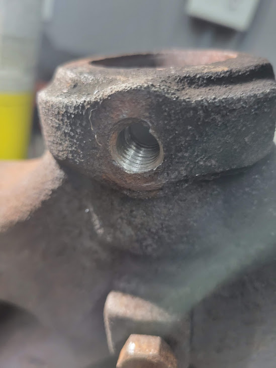 ![]() ![]() I also worked on getting the first bolt I broke when starting my disassembly. The exhaust pipe pinch bolt. I drilled and re-tapped the hole to 7/16 coarse thread just for simplicity. ![]() |