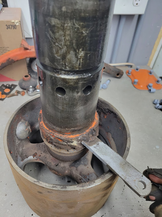 Just finished the top color change on this to add the black bandana ![]() As well as running this guy during nights ![]() BUT! I was able to work on the tractor a bit over the long weekend. the main goal was frame rail prep. I wanted to have the tractor to the point the frame rails could be installed without the need for removal again. I finished the shifter assembly and sealed it to the tractor, as well as installed the belt drive with its cover sealed and tight. and all linkages i could think of was installed prior to the frame rails. ![]() I installed the frame rails after that previous photo. ![]() ![]() Then I started working on the front end, I pulled the bolster apart from the wide front for inspection and cleaning. lots of build up debris but not much in the form of wear. ![]() I also got the front and rear pin plates removed, I will need to fill these in and machine them back to the correct size. the front is worn pretty good, Lots of time will be needed to reshape them back to original. ![]() more updates to follow as the progress continues.