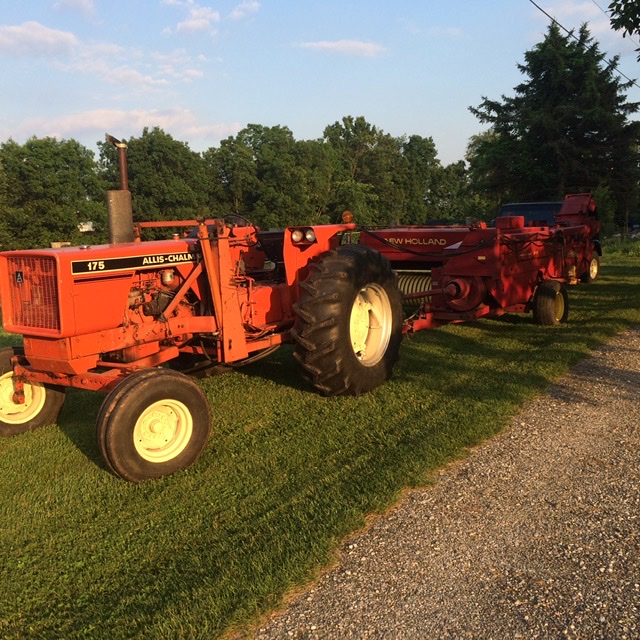 175 w/NH Baler and a load of alfalfa hand stacked.
