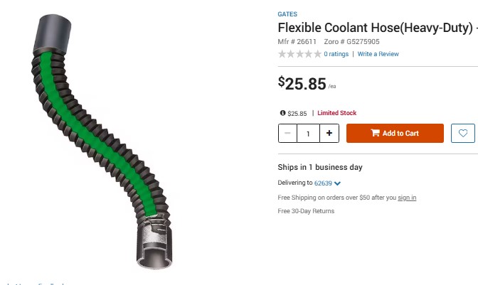 another, with only one bend... but 6 inches long Gates 18030 HVAC Heater HoseEdited by steve(ill) - 13 Jul 2022 at 7:26pm |