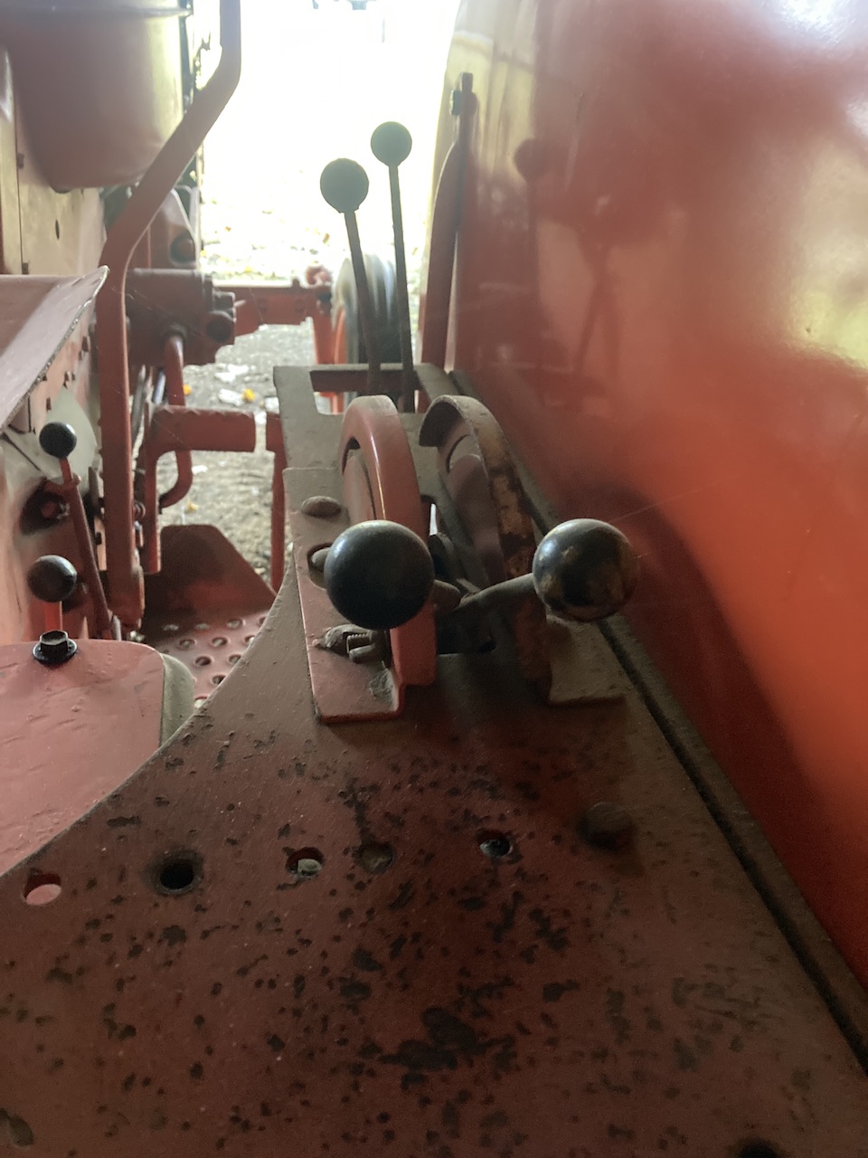The optional valve stack to the left of the seat could be adjusted for 3700 psi (for A-C hyd cylinders) or 1500 psi (for all brand "X" cylinders). It allowed the Allis tractor high pressure hydraulic system to operate other "low" pressure cylinders without damaging them. There was a knob you turned fully Cwise or CCW to get whichever pressure you desired. It had to be set for 3700 psi to operate the lift arms or their lifting capacity was reduced.