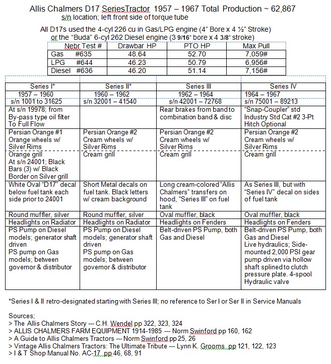 This is a chart I made up for the changes in the D17 from Series I & II (retro-designated) through the Series IV.