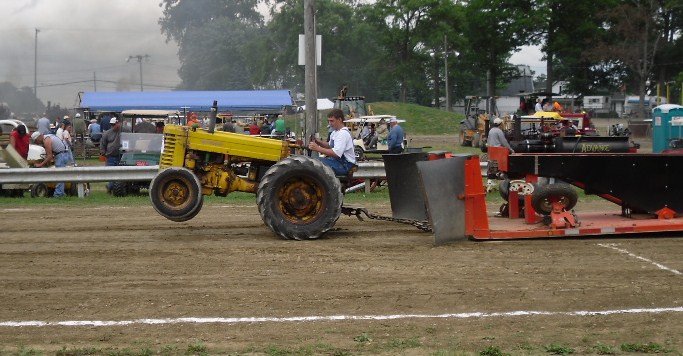 At our fall tractor pull for our club we have the "cub" pull, in which we also allow the G, MH Pony, and JD L and LA. We use our old stocne boat with no concrete weights and get kids from the crowd to step on the sled....they seem to have a good time doing it.....