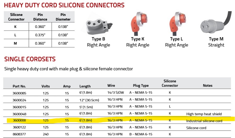 ![]() Here is the cordset that it uses too. Looks like it is a 16 gauge wire. So, 12 or even a 14 gauge extension cord depending upon how far the distance is to the receptacle, would work.
