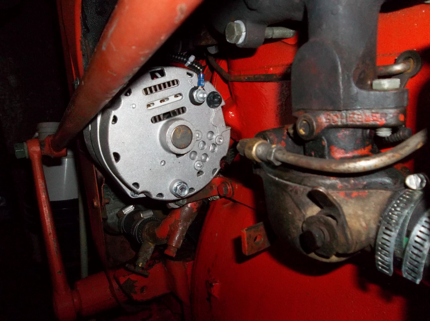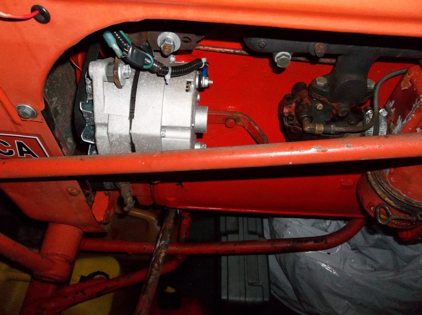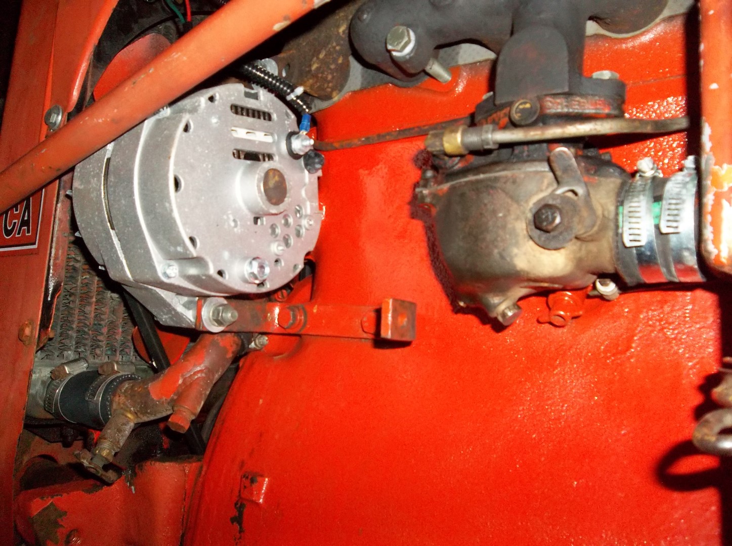 I did get some pics of the alternator on the CA, I used the pulley that came with it and made my own brackets. This is my mowing tractor and it's been on there 2 seasons with no trouble, it will self energize at less than half throttle.