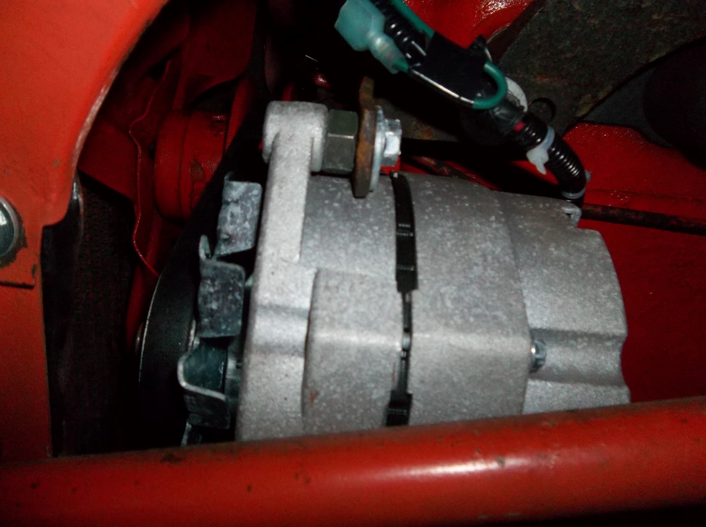 Yes: there is room for the large car version of a GM alternator behind the steering arm on a CA and use the stock belt. I've done plenty of them. I may even still have a few brackets bent up that just need welding together. This picture is a close up of the CA puller that I sold with the 160 engine in it that used the narrow belt. It really works better with the wide belt and the adjustable waterpump pulley.