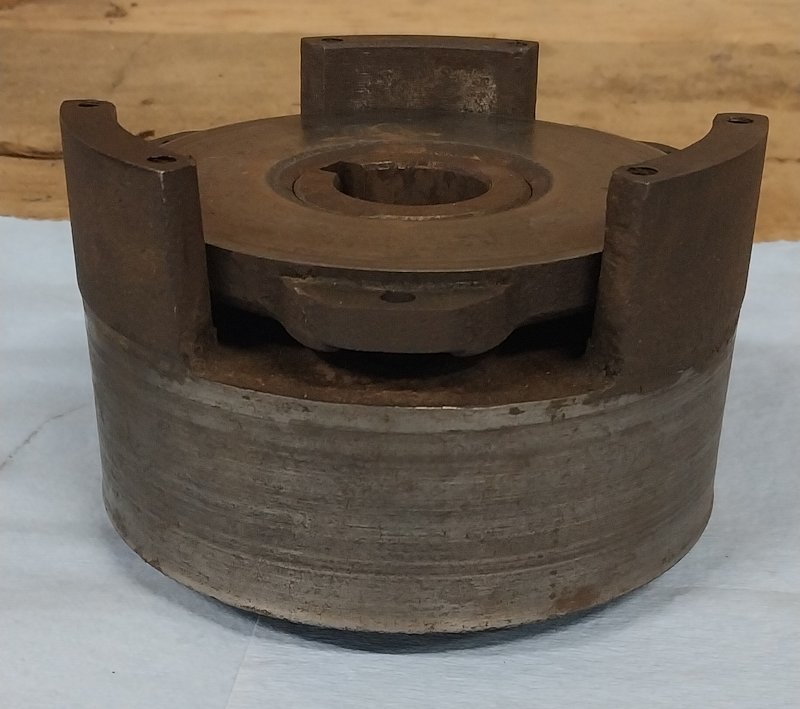 Following the advice of a local old time mechanic, I am trying a different approach to resurfacing the plate: "Put it on a 6" belt sander to flatten it and to remove the high spots and rust - don't worry about the pitting." Here's the result, sitting inside the spring cover atop the 9 springs: ![]() And here's the assembled clutch with the drive shaft inserted to align the clutch plate and brake drum: ![]() Off to the right is the secondary pressure plate that I cracked. At this point, the assembled clutch is installed inside the final drive housing which is now bolted to the differential. The actuator clearance is set at 0.050". It took several cycles of adjust the clearance and compressing the clutch pack to get the clutch fully seated on the outer drive shaft. I've installed a new brake band. Tomorrow I will mount the right rear wheel and the platform frame and fender. This will leave access to the opening in the housing if I need to adjust the actuator clearance again. Then I'll test the clutch (and the brakes) to see if it functions properly. Will the secondary pressure plate work as my old timer predicted?