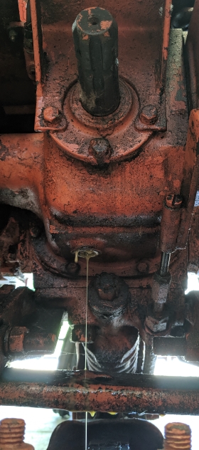 Here's where I removed drain plug from( seen from rear- directly in line with PTO shaft)
