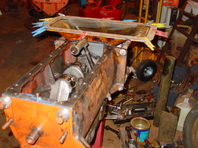 I've got the front axle out of my dad's CA and have repaired the pivot pin. I was planning on changing out the leaking oil pan gasket down the line but I thought I'd tackle the oil pan while the axle is out of the way.