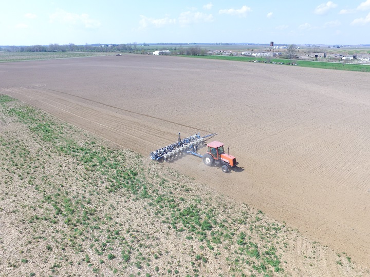 How does the 8030 handle the planter without duals? Are you just using 12 rows for corn planting other rows locked up? Those are cool pictures. From a drone?