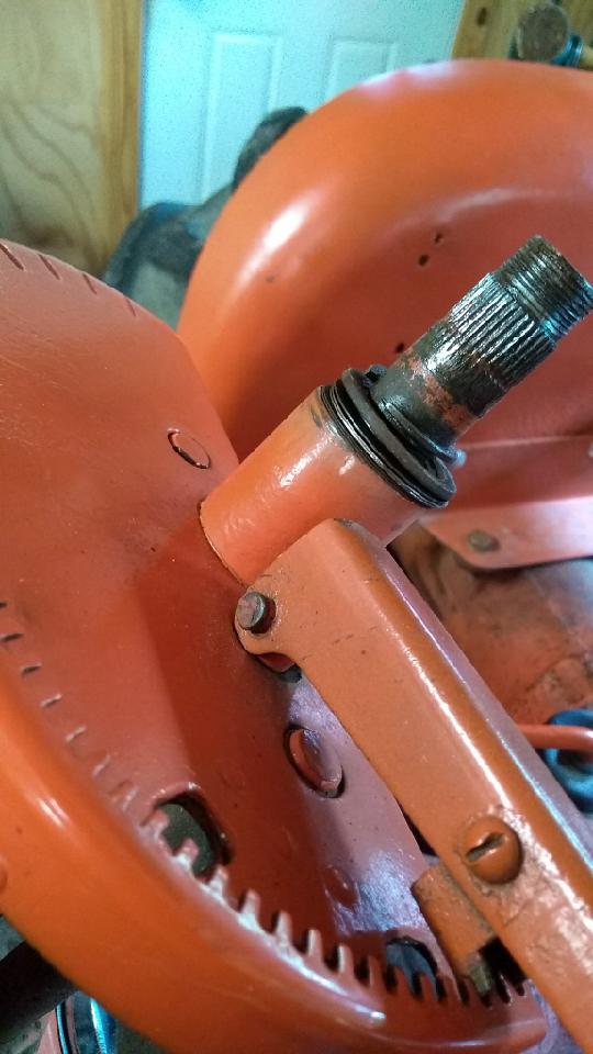 AC... dont think i was much help... On the B-C the shaft is attached SOLID at the gear box and extends up the hollow tube with a bushing at the top.. It is easily pushed down to install new.... and the shaft is tapered with a KEY way for the wheel..