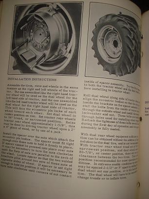 We ran duals on the 45 we had on the farm when I was young.  They were just a second set of 45 wheel assemblies turned with the dish in and bolted on with the same lug bolts that hold the wheel assembly to the axle stub (longer bolts were used).  All 4 tires were loaded and all 4 had the same tread pattern.  We had an E III gleaner engine kit in it with a D-17 governor spring, and its main job was pulling a 10 ft. 1200 series field cultivator with a drag harrow behind that.