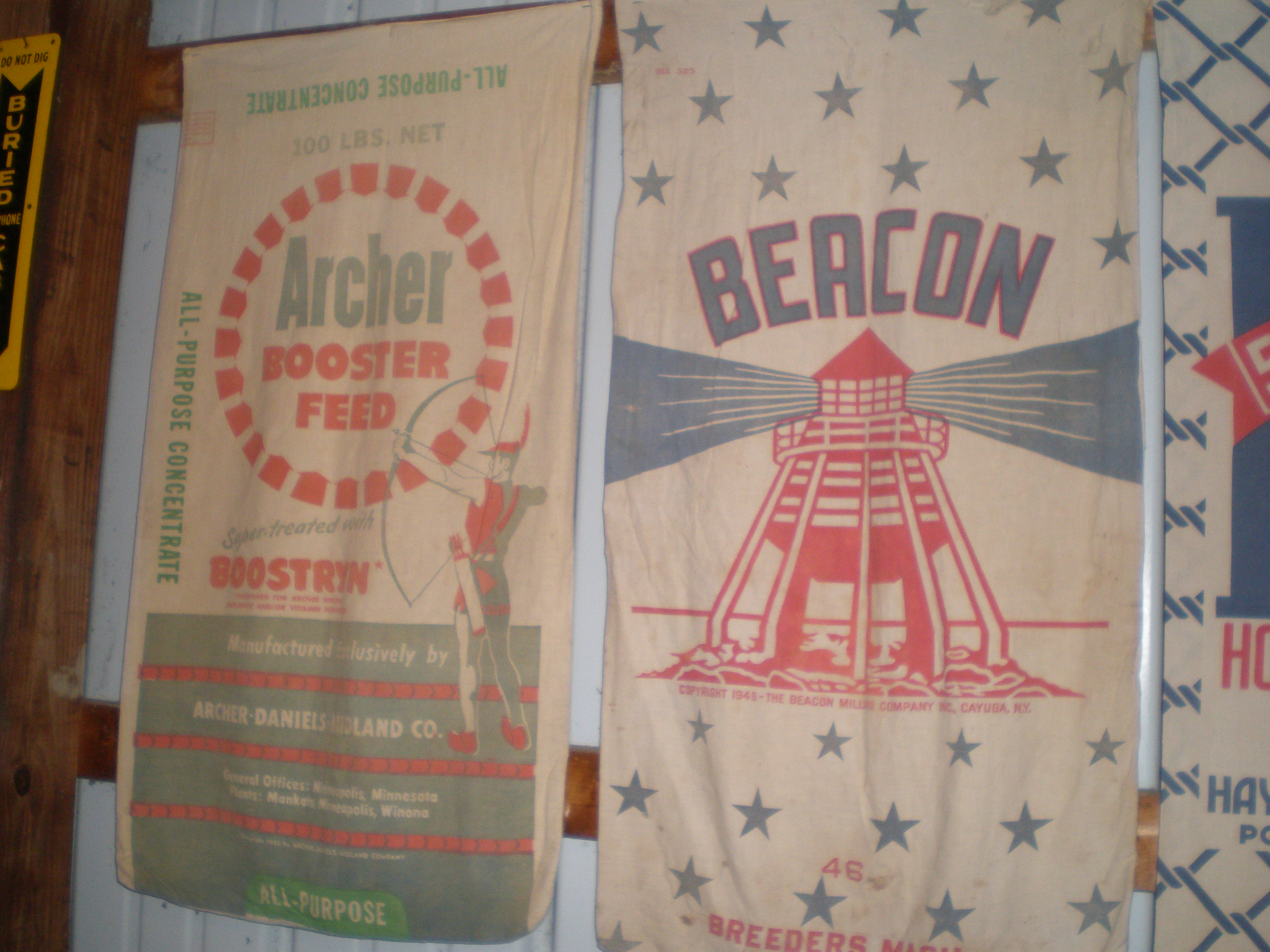 Feed sacks were that ruff burlap or paper. A lot of sacks were recycled bean or potato, I guess mostly bean. Potato sacks were coarser weave and best for rolled barley.BTO planted certified barley,oats,and wheat then the rest would buy the one year off from them to seed crops so no company to put there name all over a seed sack ether. So seed was in just about kind burlap that would not leak bad. Neet see your collection.