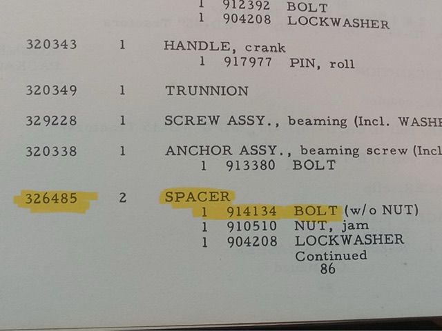 First picture is from plow book for spacer and bolt. Second, third picture is from standard hardware book.