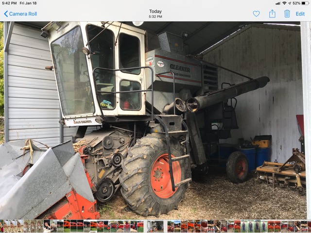 1975 Gleaner K corn and soybean special I just got done taking off corn with the 330 head. Bad year lots of rain had it all off except 4 acres back in November. Had to wait for the ground to freeze to finish. I somehow deleted the pics so I added it again