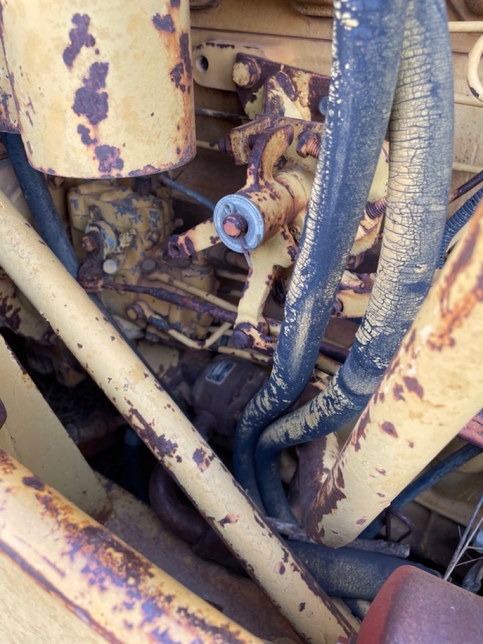 These are the only pictures I currently have and I'm nearly a two hour drive from there.  It may be a month or more before I get back out there.  I have done some minor work on 12 and 24v cummins and I owned a kenworth for a few years with a cat 3406e, so not completely oblivious to diesels.  My concern is internal condensation and potentially bad fuel from sitting for 5-10 years and if anyone may know the best way to approach it.  Trying to decide if it's worth the trouble for me to tackle it or just try to sell it as it sits or trade for something I can actually use.  I don't have a lot of free time and I sold my semi a few years ago.  I'm assuming I just need a couple of big 12v batteries wired in series, just didn't know if there's a preferred size or type I should look into for this dozer.  Also don't know how to approach the fuel system with diesel that's been sitting for so many years.  Such as draining/flushing the tank and lines or cleaning the injectors etc.